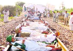 जाटों ने नौकरियों में आरक्षण के लिए उन्हें ओबीसी का दर्जा दिये जाने के निर्णय में हो रहे विलंब के खिलाफ कल शाम रेल पटरियों के समीप धरना शुरू कर दिया।
